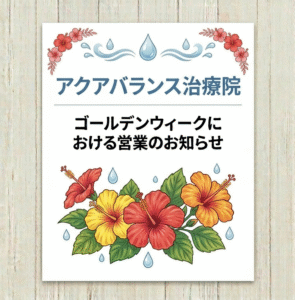 皆さま、いつもご覧頂き有難うございます👋😊東京都北区赤羽のアクアバランス治療院です。 今回は『GWの営業スケジュール』というテーマです。 GW期間中の営業スケジュールは以下の通りです。 📌定休日(木曜日)以外は全て営業 […]